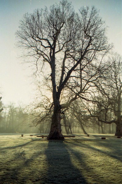 februar in pankreich, es ist eisig kalt und neblig. die schatten sind hart, die farben gehen ins bräunliche, das kann aber auch am entwickeln liegen.