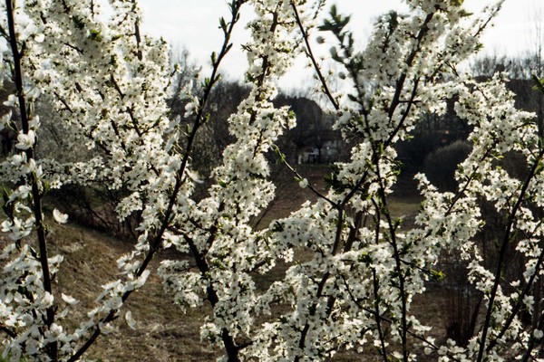 besuch in der alten heimat, es grünt und blüht bereits, das wetter ist durchwachsen. ein gummihuhn in der schönholzer heide.