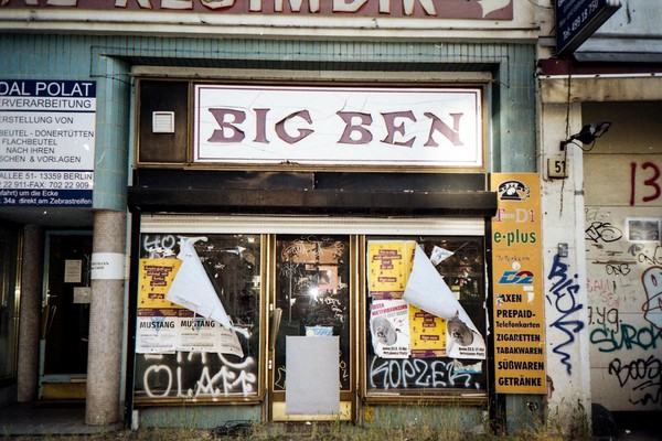 spaziergang durch wedding und mitte, wo auch dieser thread entstand. die kleine olympus von 1991 ist derzeit völlig überteuert, liefert anständige und knackscharfe ergebnisse und ist wirklich mini. sofort einsatzbereit nach dem aufschieben, nur noch schnell den blitz abschalten und knips knips. das rückspulen des films dauert ewig. mit dem sucher komponieren ist für anfänger, natürlich schießen wir aus der hüfte.