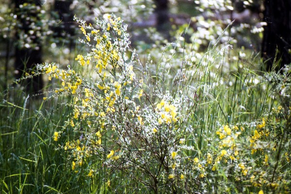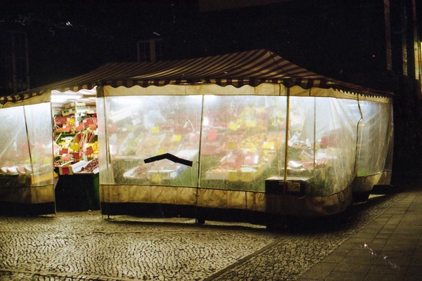 spaziergang durch das nächtliche pankreich, durch schöneberg und einen wald in brandenburg. eine eidechse sonnt sich in einem nadelgehölz, der kaktus blüht, die wäsche trocknet.
