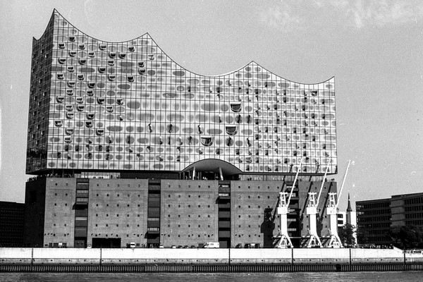 hafenrundfahrt in hamburg. vorbei an der ever gifted (nicht verwechseln mit der ever given), die gerade beladen wird. vorbei an der yacht eclipse eines russischen oligarchen. die skyline von hamburg, die elbphilharmonie. alles wunderschön im septemberlicht.