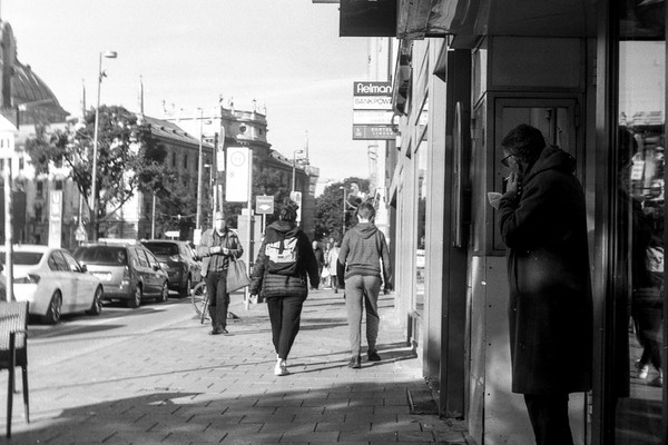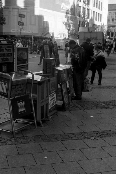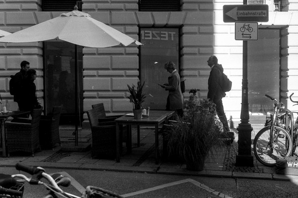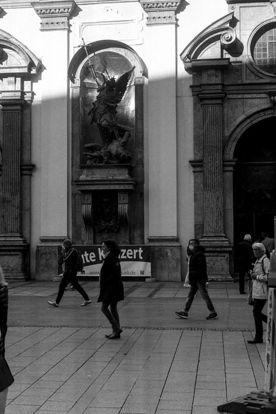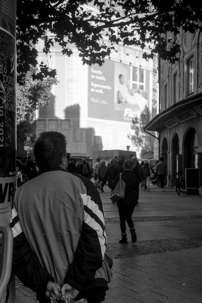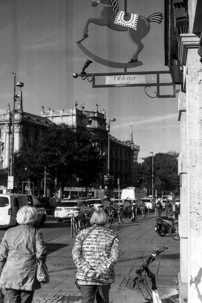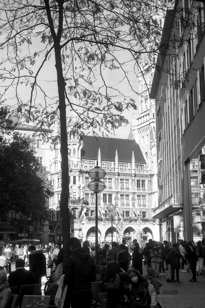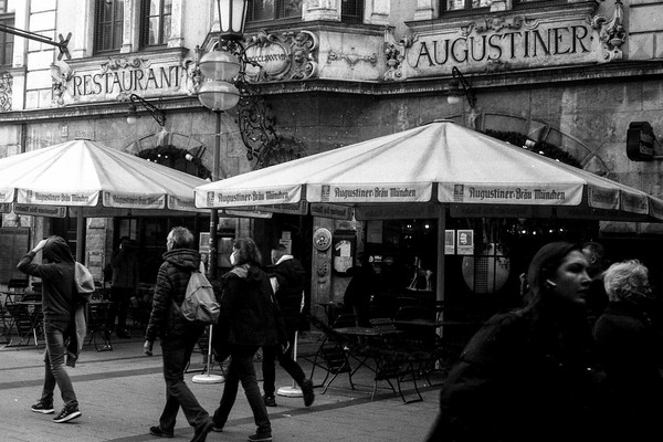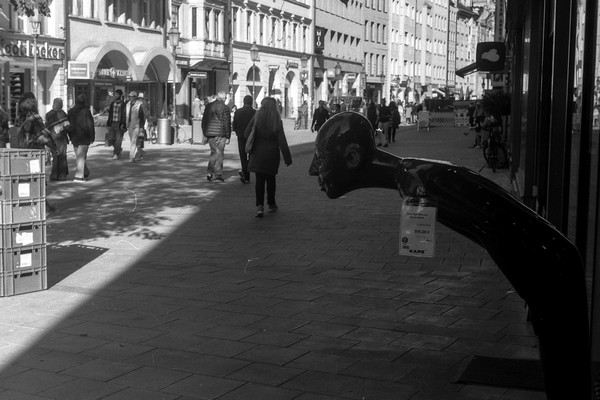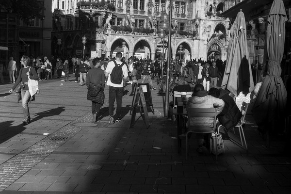 besuch in münchen im letzten oktober, die sonne lacht über bayern und die menschen tummeln sich in der innenstadt. es gibt kein oktoberfest. die hauptsatdt der bajuwaren wirft harte schatten, die belichtung passt, die leica liefert (diesmal) zuverlässig.