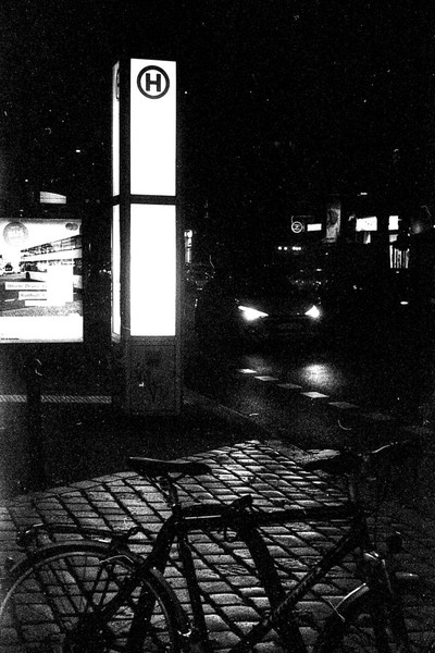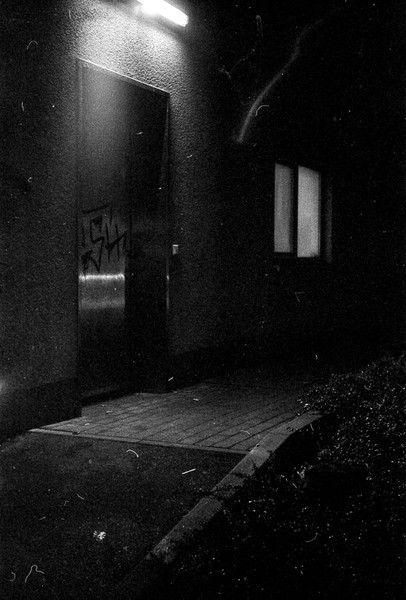 000119 - 11/2021 Apr 5, 2022 📷 Leica IIc 🎞️ Ilford 400 HP5 Plus 🥫 Kodak D76 1+0 9,5min 💻 Epson Perfection V330 Photo rundgang im dunklen pankreich, belichtung geschätzt. ein bischen länger wäre wohl besser gewesen. 📂 35mm 🏷️ 35mm elmar leica nachtaufnahmen pankow pankreich