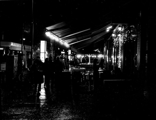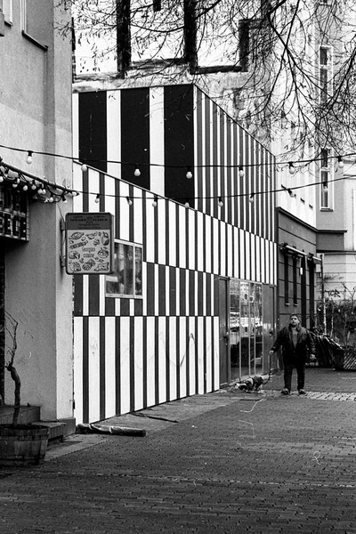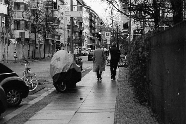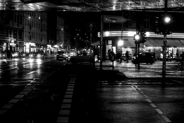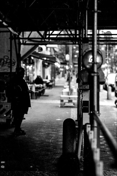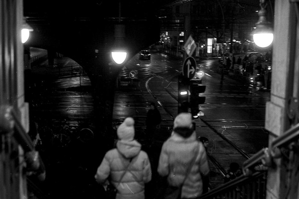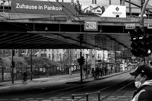 abendliche aufnahmen in mitte um den rosa-luxemburg-platz, spaziergang durch prenzlauer berg. berlin ist leer ende dezember und trostlos in zeiten von corona.