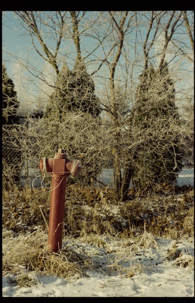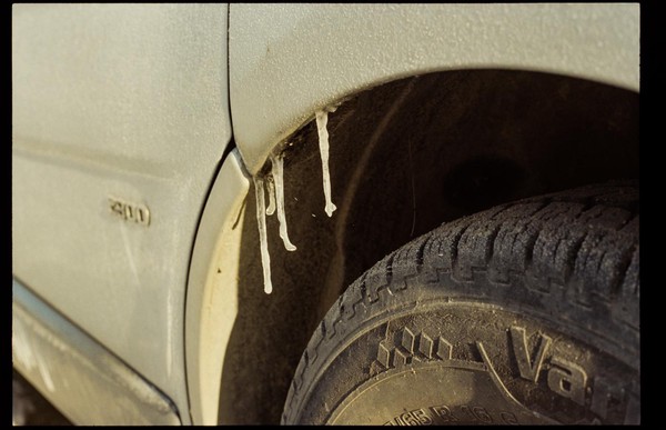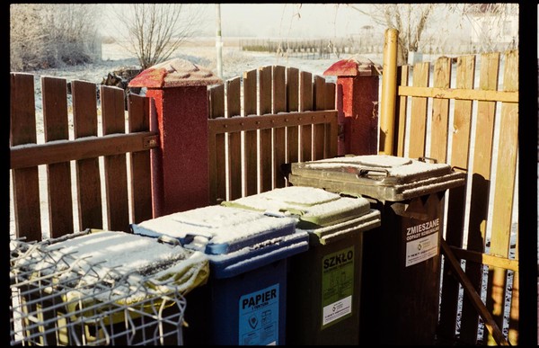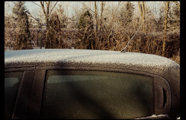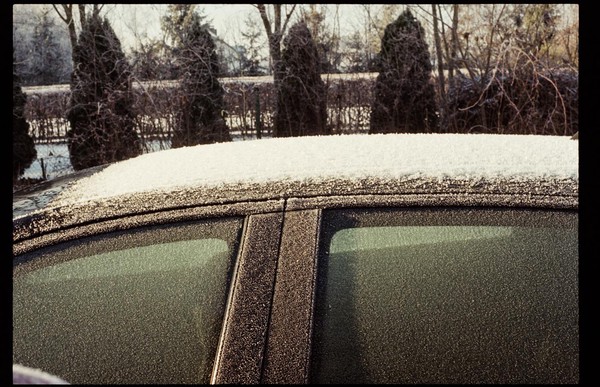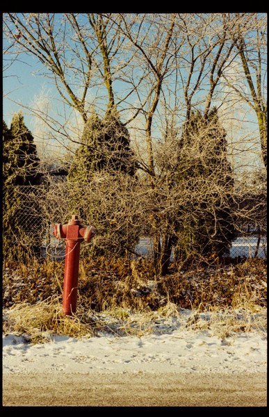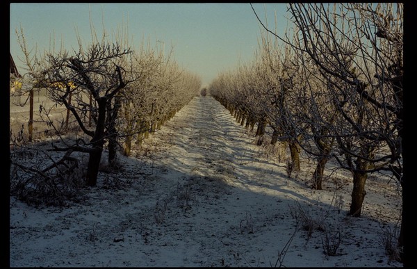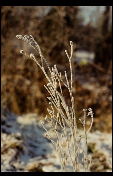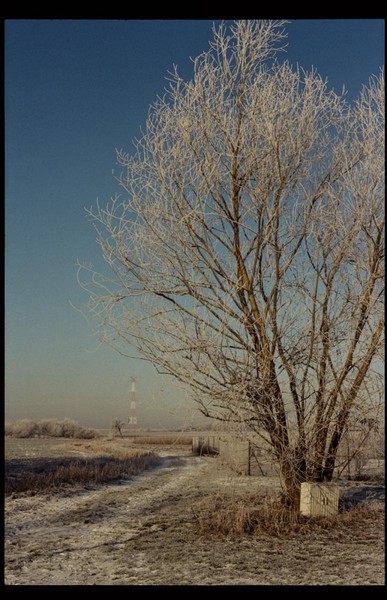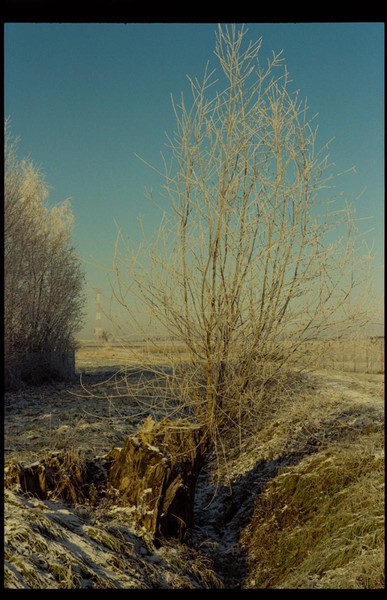 besuch in niederschlesien im dezember, es hat geschneit, alles ist gefroren und glitzert in der gleißenden sonne. die belichtung in der Nikon FA kommt auch ohne belichtungskorrektur klar, der tageslichtfilm liefert.