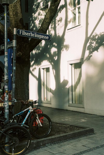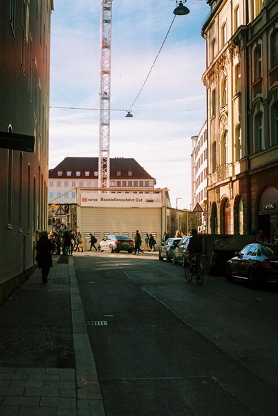 feines herbstlicht in münchen (zuvor in s/w), festgehalten mit der schraubleica auf portra 160. und ein spaziergang durch prenzlauer berg zu safelight in der schivelbeiner.