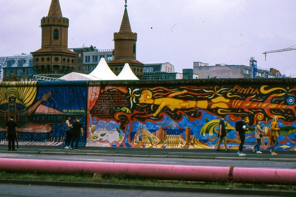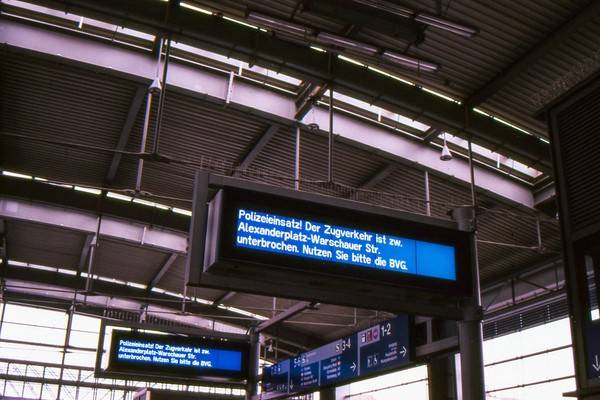 spaziergang durch den osten berlins, ein zugausfall und ein wochenende in brandenburg. der abgelaufene diafilm (alter unbekannt) performt noch ordentlich.
