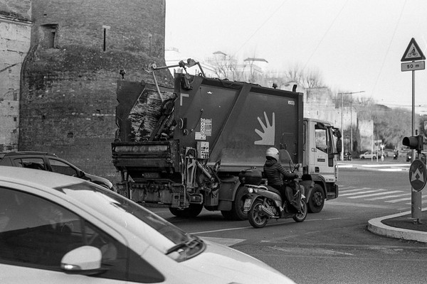 rom in schwarzweiß, die cestius-pyramide, die straßen um den monte testaccio - leider geschlossen. eine feuerwache. aus dem Mattatoio (Museo d’Arte Contemporanea di Roma) kommt schöne musik, wir sitzen auf einer bank und lauschen.