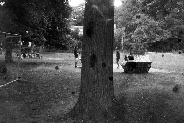 spaziergang durch pankreich (friedhof, bürgerpark) mit dem 30 jahre alten Svema FN64 (belichtet bei ISO 25). das alter hat seine spuren hinterlassen und ich habe ihn wahrscheinlich falschrum eingespult, sodass er von hinten belichtet wurde.