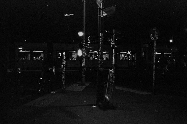 wanderungen in der nacht und hinterm hauptbahnhof. den abgelaufenen HP5 zu wenig gepusht. an filmkorn mangelt es jedenfalls nicht.