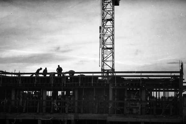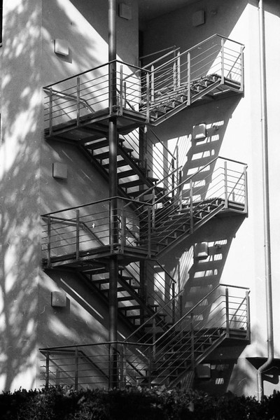 dieser film lag zu lange belichtet im kühlschrank und chemisch scheint da was passiert zu sein. jedenfalls noch bilder vom THF (mehr: 1,2,3,4), ein ausflug nach spandau und der blick aus dem fenster.