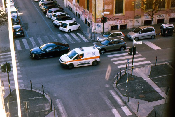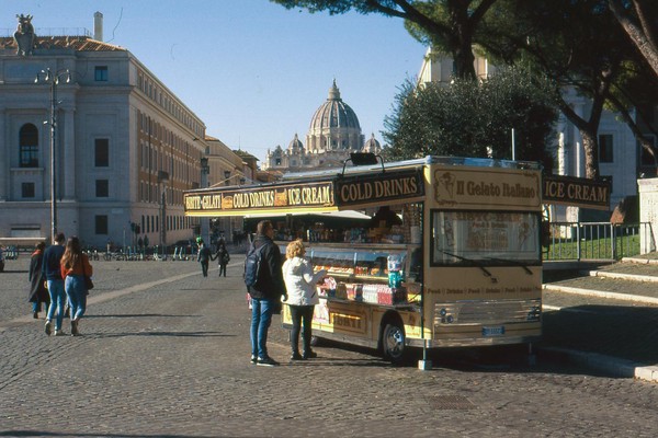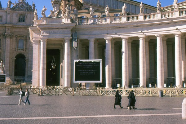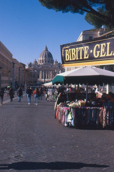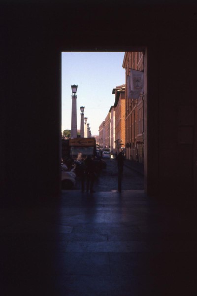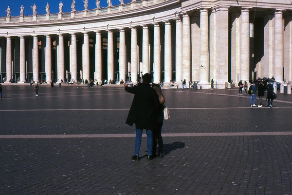 zweiter tag in rom, die sonne wirft harte schatten, der überlagerte diafilm liefert ordentliche ergebnisse. besuch beim vatikan, statuen, stadtansichten, römer. überall polizei und carabinieri wegen terror sicherlich. es herrscht noch maskenpflicht in den straßen und den läden.