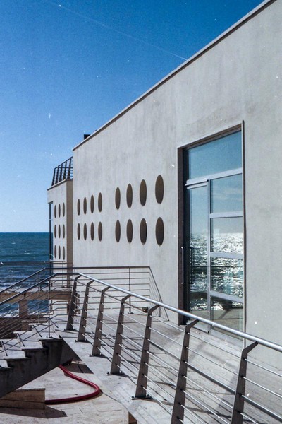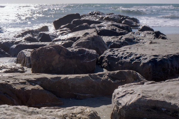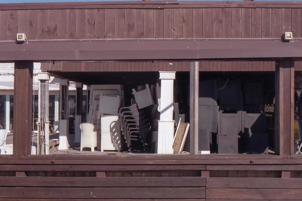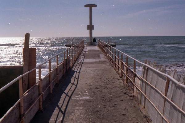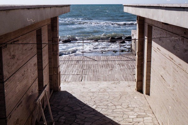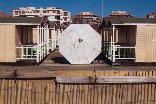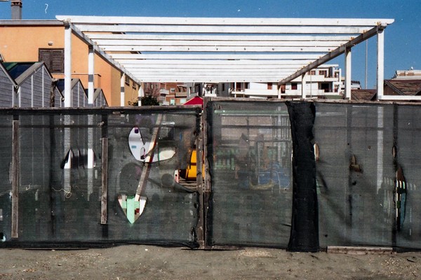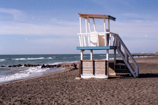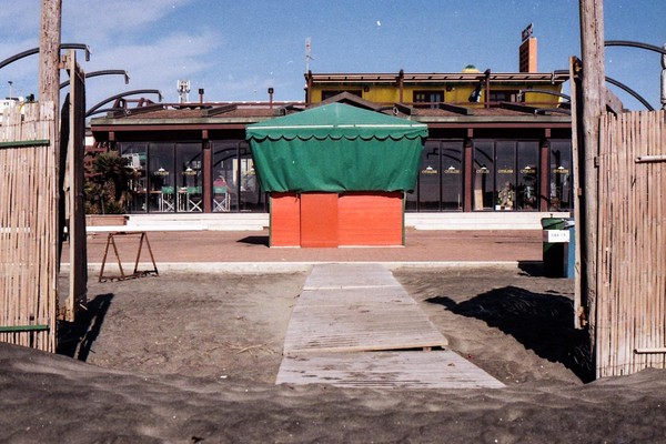 besuch in ostia, dem strand roms. im februar wochentags ist der strand leer, nur vereinzelt treffen wir menschen. schwarzer sand, bier an der strandbar, das gesicht glüht.