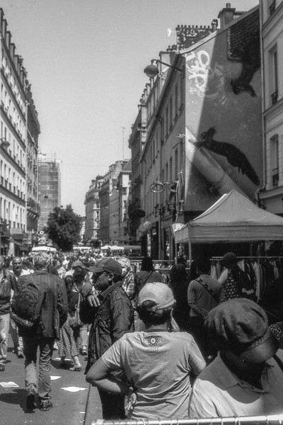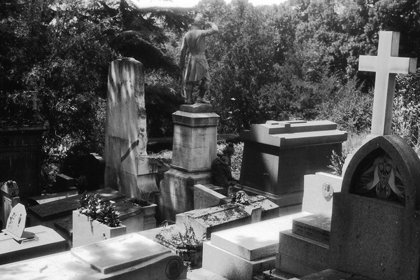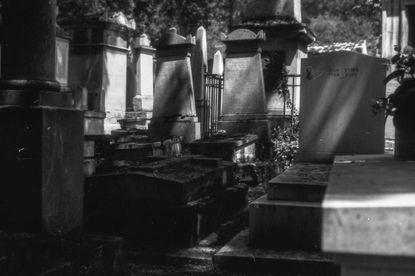 000152 - 06/22 - paris #6 Feb 28, 2023 📷 Nikon FA 🎞️ Washi A 🥫 Kodak HC-110 1+63 14min 💻 Epson Perfection V330 Photo friedhof Père Lachaise, ein flohmarkt, eine demo auf dem place de la bastille. 📂 35mm frankreich 🏷️ 25mm flohmarkt france frankreich friedhof paris pere-lachaise place-de-la-bastille