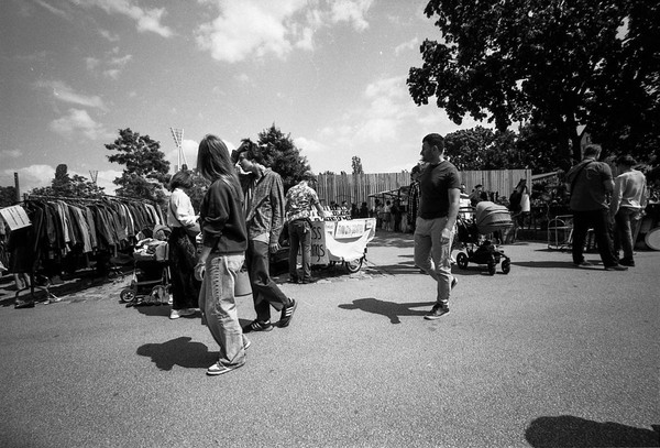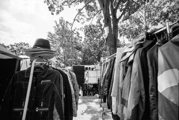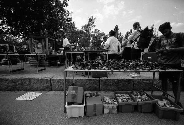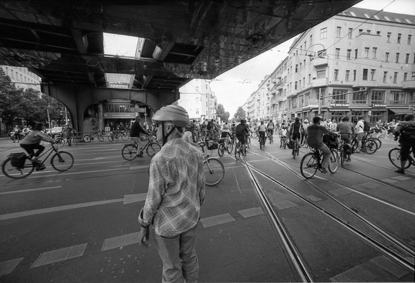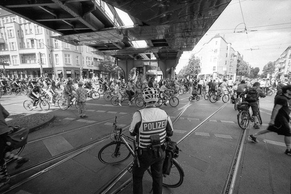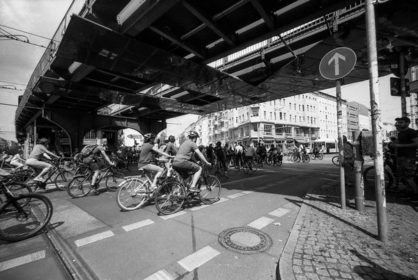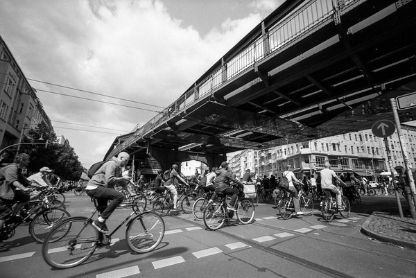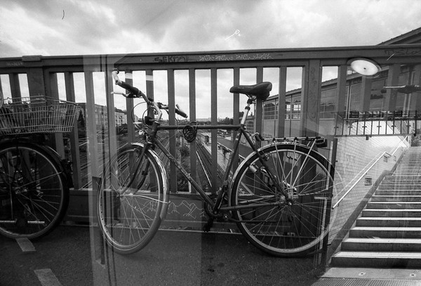 flohmarkt im mauerpark, die fahrraddemo am 2. juli, eine schiffsfahrt über die spree. wilde doppelbelichtungen (film in der kamera zurück gespult).