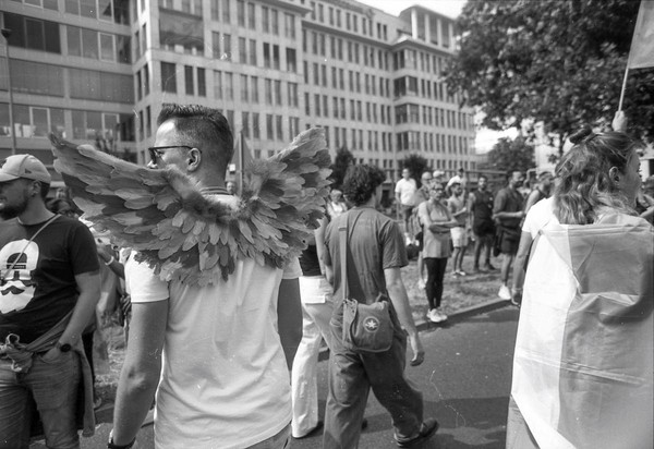 000219 - 07/23 Jul 23, 2023 📷 Nikon FA 🎞️ FOMA Fomapan 100 🥫 Kodak HC-110 1+63 10min 💻 Epson Perfection V330 Photo csd gestern (Be their voice - and ours! Für mehr Empathie und Solidarität!) und tempelhofer feld abends. 📂 35mm berlin 🏷️ berlin christopher-street-day csd demo gay-pride lgbt parade tempelhofer-feld