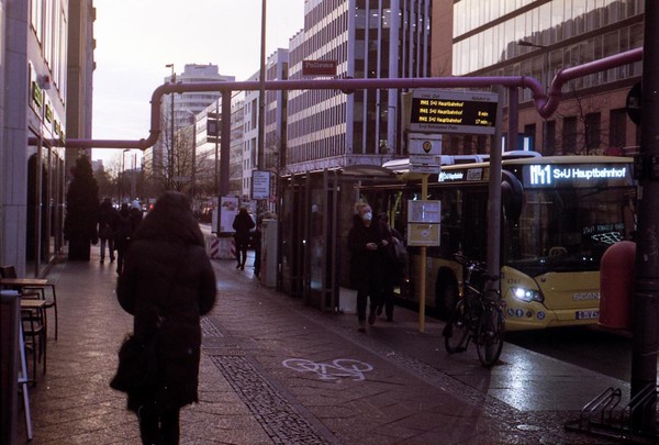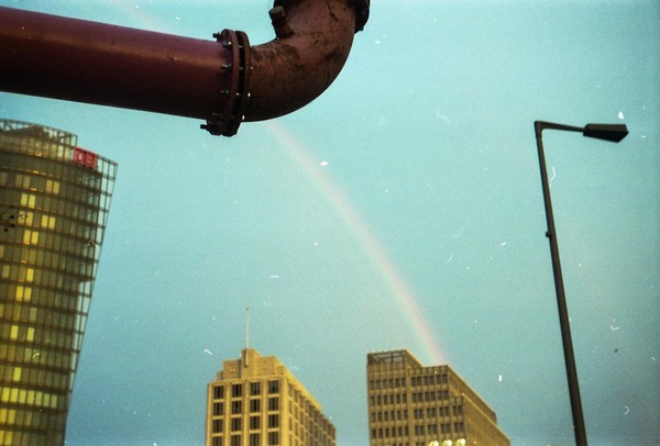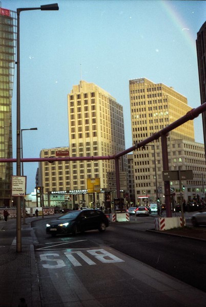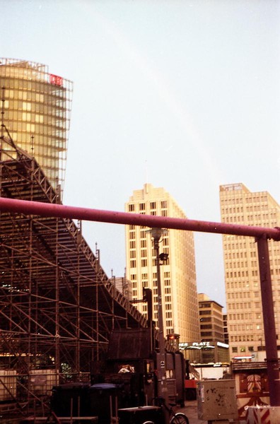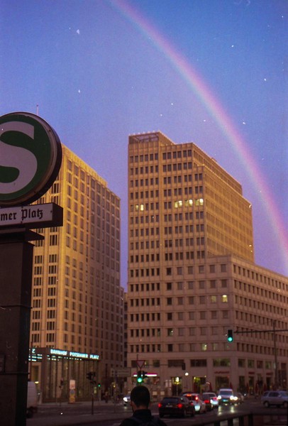 sonnenaufgang und regenbogen am portsdamer platz. spaziergang durch den schloßpark pankow. im januar gabs noch wahlplakate (wiederholungswahl zum berliner abgeordnetenhaus).