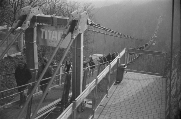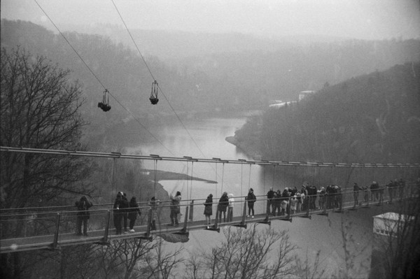 spaziergang durch bad harzburg. besuch an der rappbodetalsperre, da haben sie eine lange brücke für fußgänger gebaut ("titan rt"). plus skizzen mit der nikkormat: