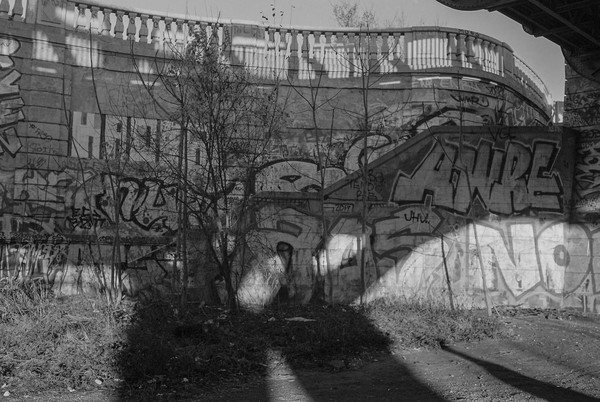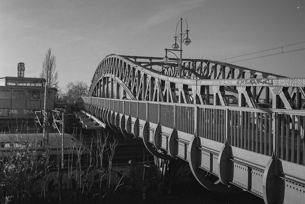 000329 - 01/25 Mar 24, 2025 📷 Leica M5 🎞️ ILFORD XP2 Super 400 🥫 safelight berlin 💻 safelight berlin spaziergang durch pankow, prenzlauer berg und wedding im januar. 📂 35mm berlin 🏷️ gesundbrunnen berlin pankow pankreich bornholmer brücke böse brücke schönhauser schwarzweiß