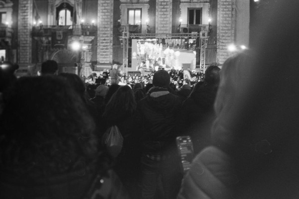 noch mehr taormina und blick aufs mehr. abends zum fest der hlg agathe, es gibt feuerwerk und süßkram. am nächsten tag wieder feuerwerk (tagsüber!) und noch mehr umzüge.