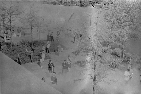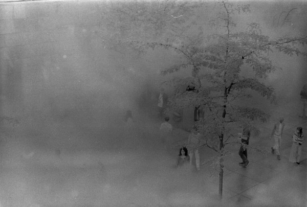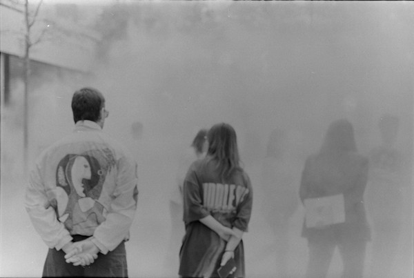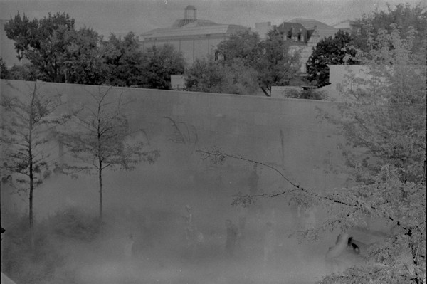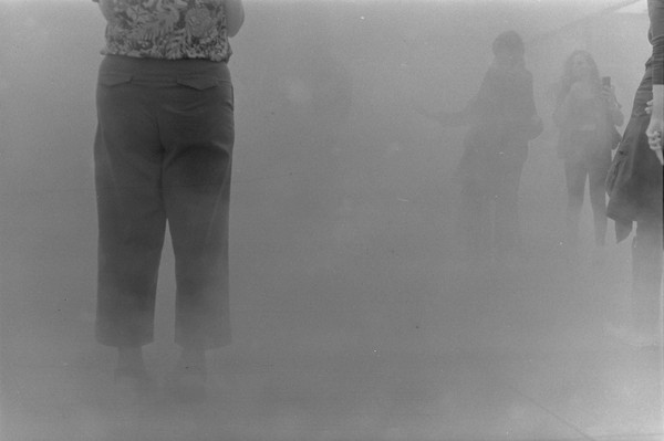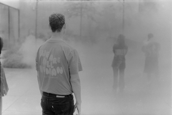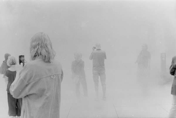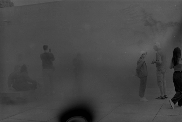 wir besuchen die nebelskulptur von Fujiko Nakaya im skulpturengarten der neuen nationalgalerie.
