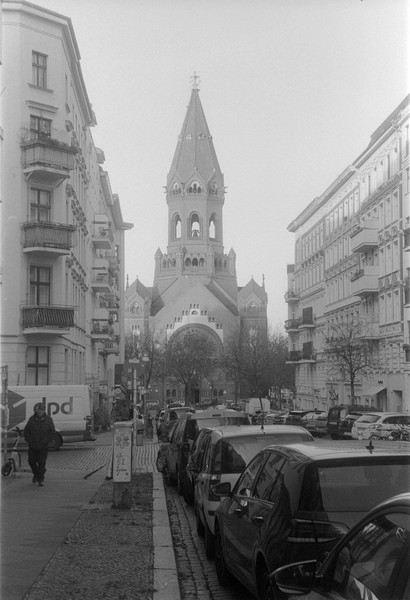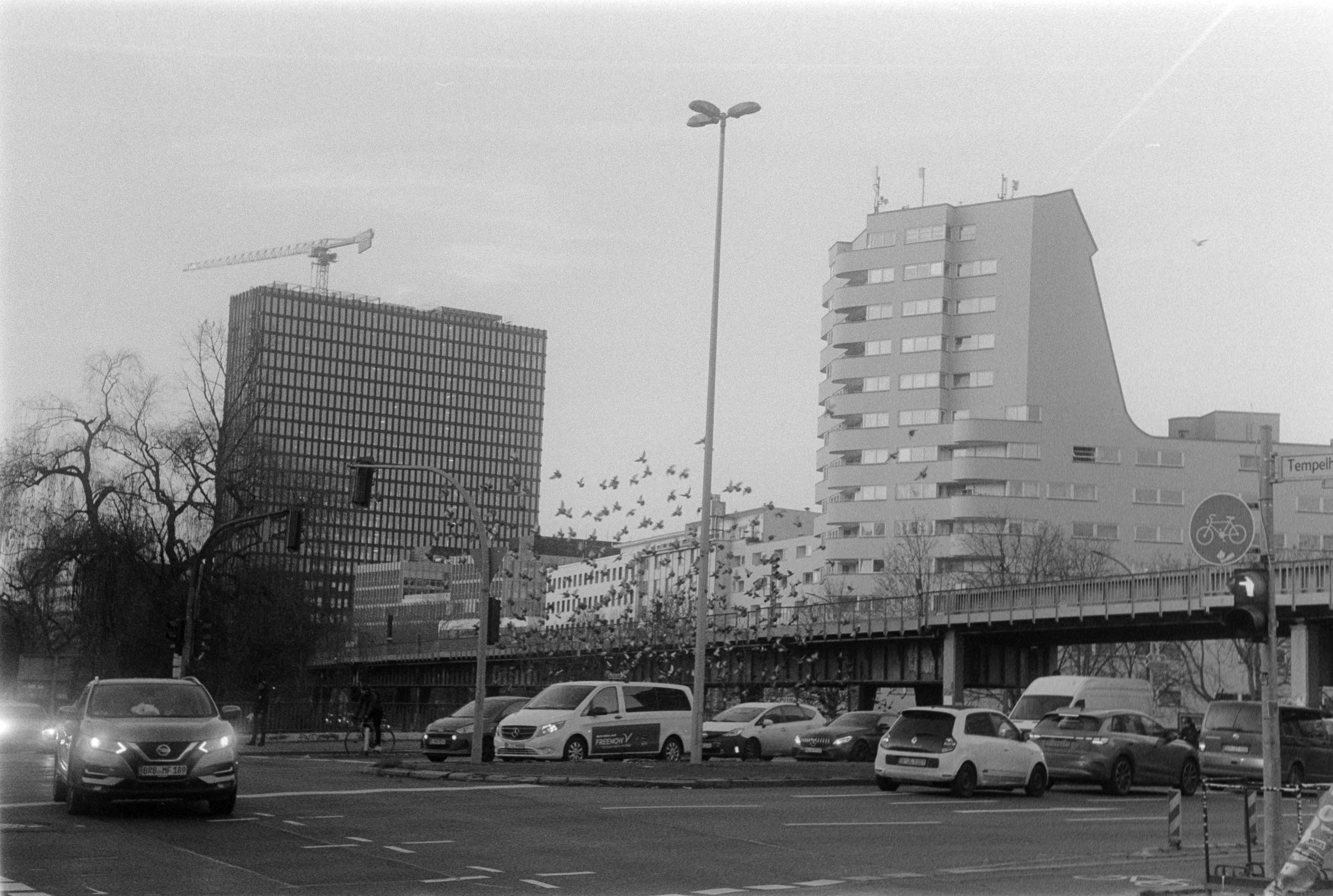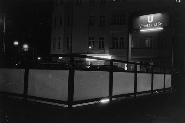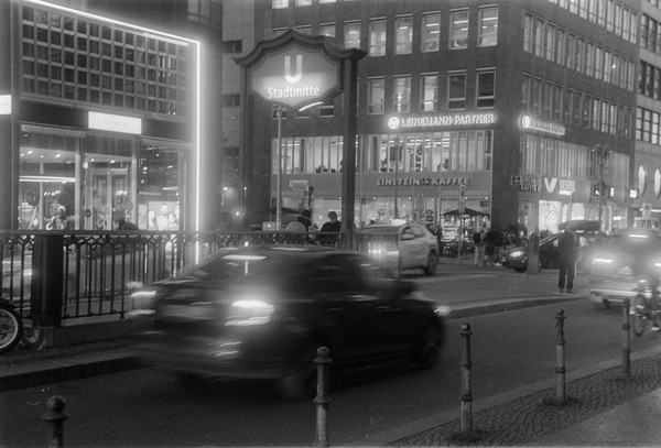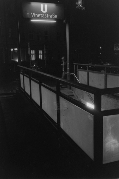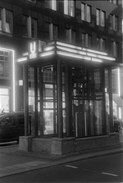 000391 - 12/25 Dec 21, 2025 📷 Leica M5 🎞️ Agfa APX 400 🥫 ZONE IMAGING DeFehr´s 510 Pyro 1+100 11min 💻 Sony Alpha 6000 spaziergang durch kreuzberg un prenzlauer berg, es ist früh dunkel in der friedrichstraße. 📂 35mm berlin 🏷️ berlin kreuzberg hafenplatz mehringdamm friedrichstraße technikmuseum kettwurst prenzlauer berg kochstraße berliner woche ubahn stadtmitte