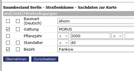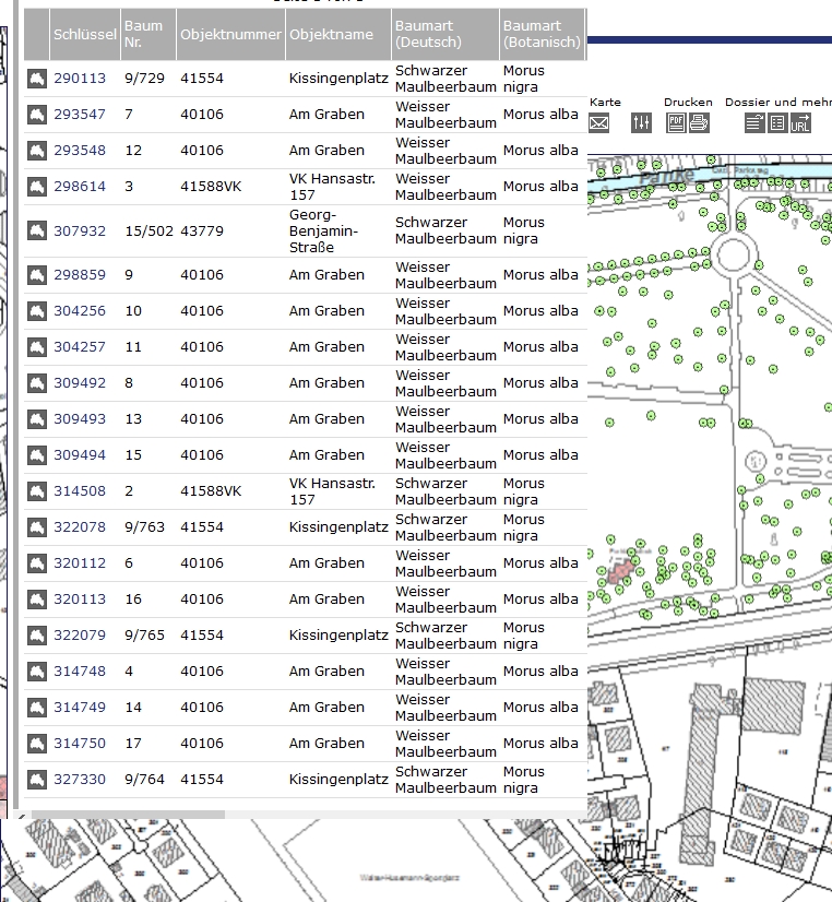 aus nicht mehr nachvollziehbaren gründen suche ich mit herrn ackerbau den maulbeerbaum im bürgerpark. nun könnte man durch den park streunern und rinden vergleichen. oder man nutzt die baumbestandskarte und filtert sich das zusammen.