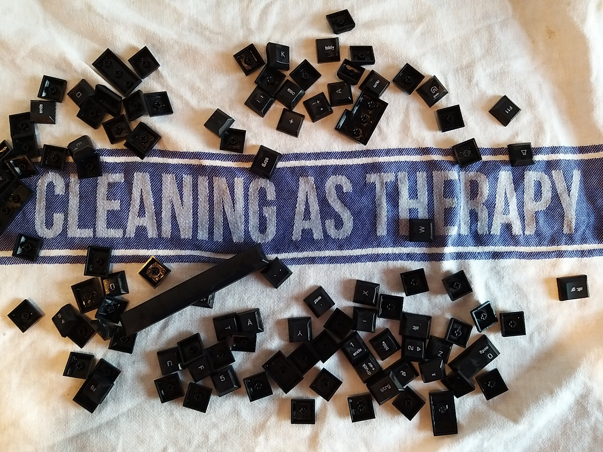 CLEANING AS THERAPY Geschrieben am Jul 8, 2021 habe wegen wasserschaden und dreck mal die tastatur gereinigt. dabei das geschirrtuch mit dem sinnspruch benutzt. 📂 technik 🏷️ geschirrtuch keyboard keys tastatur tasten technik therapie