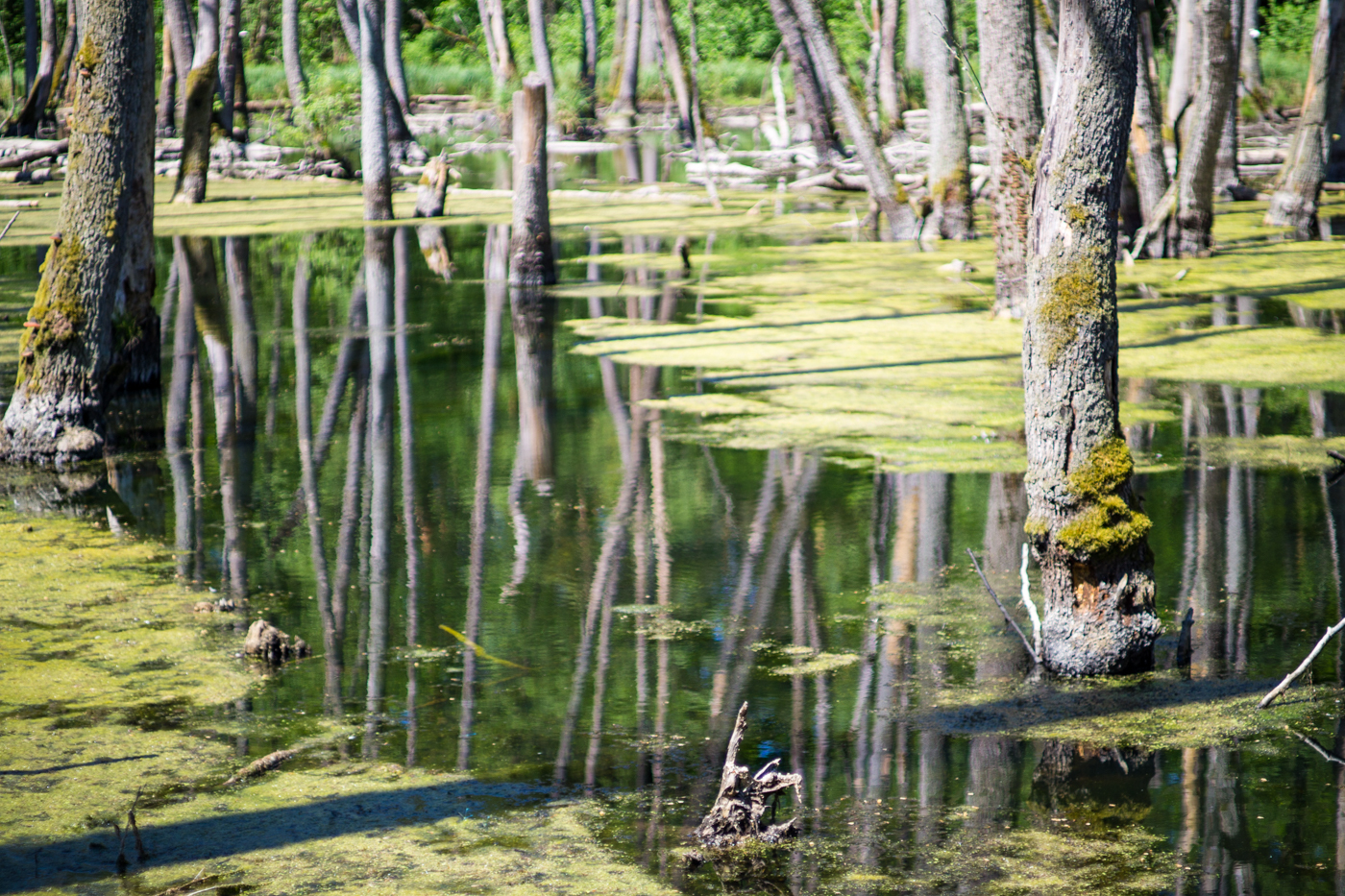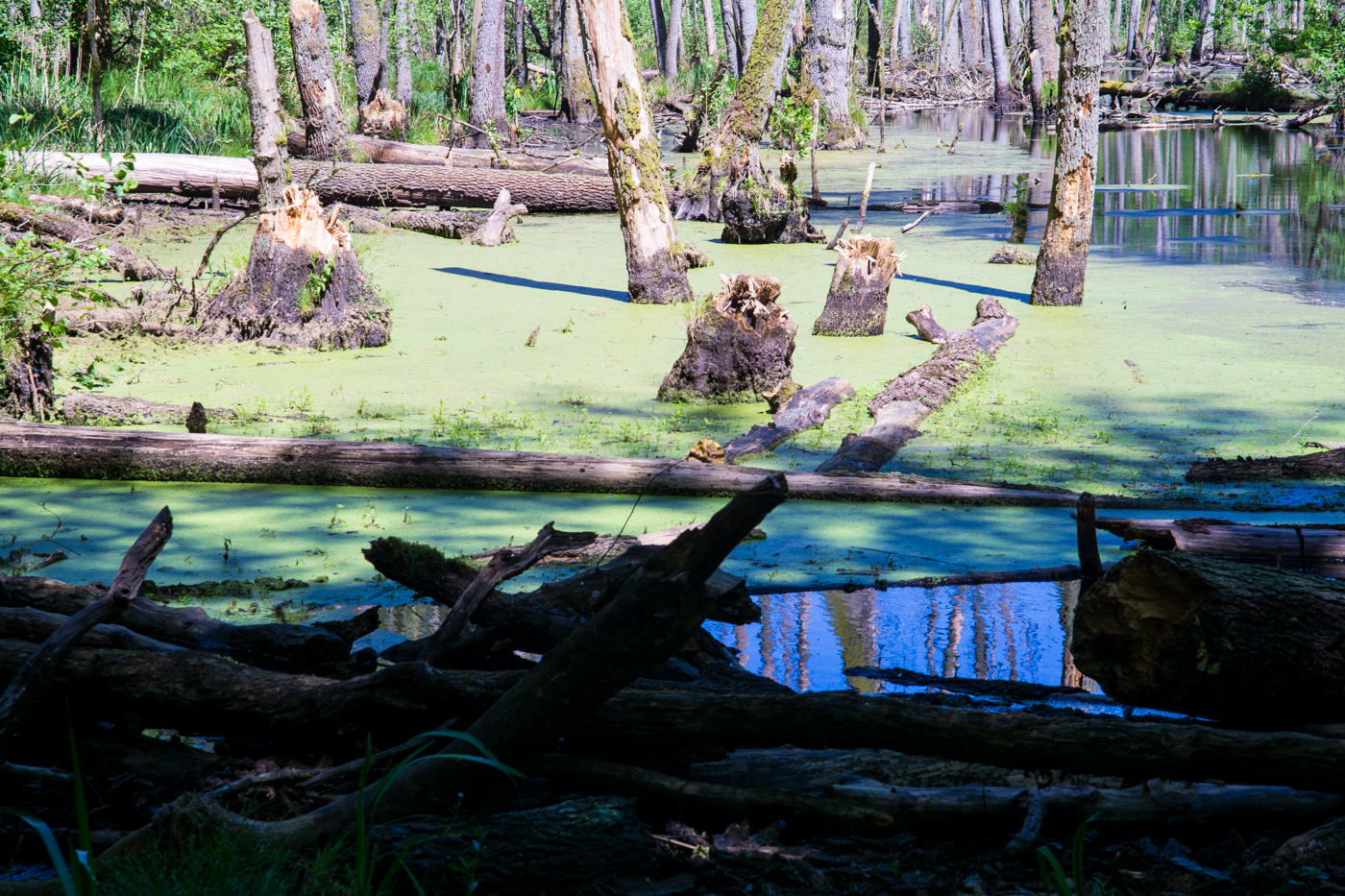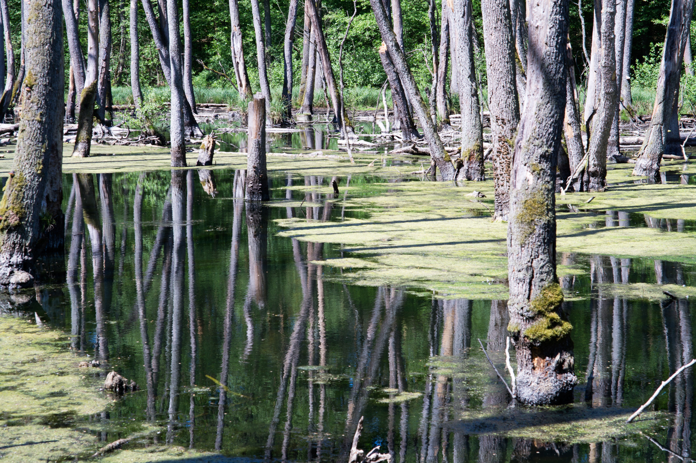 wir latschen unmotiviert durch den wald. der scheiß bieber hat das wasser angestaut und jetzt sind die drecksbäume alle tot. es wächst immer wieder neu, kein landschaftsgärtner, der hier was macht. der wald sieht aus wie kraut und rüben weil niemand aufräumt. auch kein förster, der die dummen bieber abknallt. blöde städter kommen uns entgegen und sind scheiße freundlich. am ende ein waldhaus, wo man bockwurst und kuchen bekommt. so dumm!
